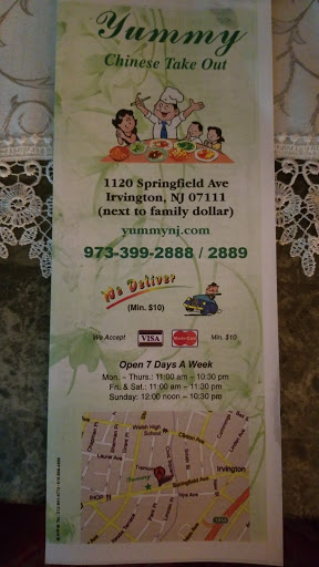 Restaurant menu map for Yummy Chinese Take Out located in 07111 Irvington NJ 1120 Springfield Avenue. See reviews photos directions phone numbers and more for the best Chinese Restaurants in Irvington NJ. See restaurant menus reviews ratings phone number address hours photos and maps.